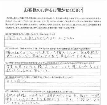 - 営業に来てくれた職人さんがとても感じが良くて、親切だったので安心した。