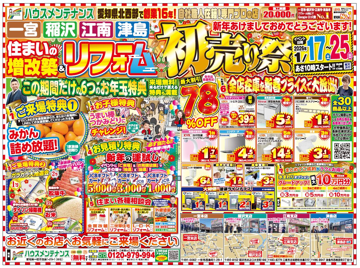 以下のハウスメンテナンス各店舗にて開催いたします。