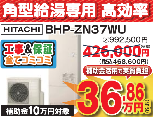 通常468,600円(税込み)のところ、今なら補助金活用で実質368,600円(税込み)でお買い求めいただけます!!