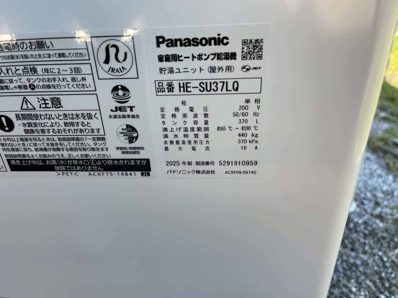 S様邸では、以前からお使いのパナソニック製エコキュート「HE-370SUEQ」が設置から長年経過しており、「お湯はまだ使えているけれど、そろそろ故障が心配…」とのご相談をいただきました。
