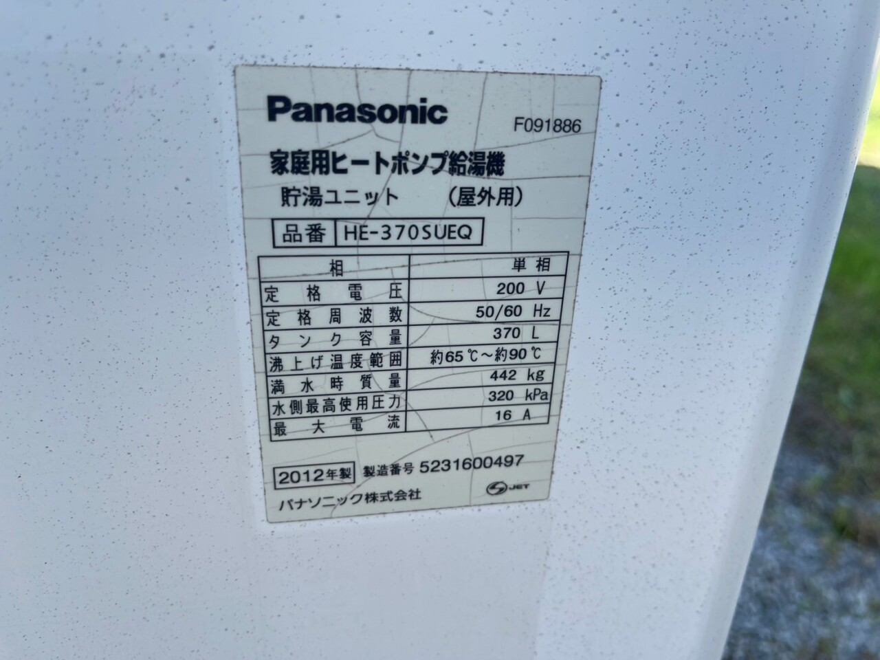 今回のS様邸(静岡県浜松市)では、古くなったエコキュート「HE-370SUEQ」から、