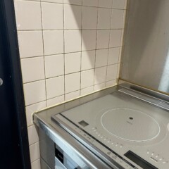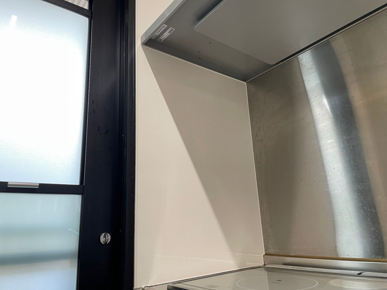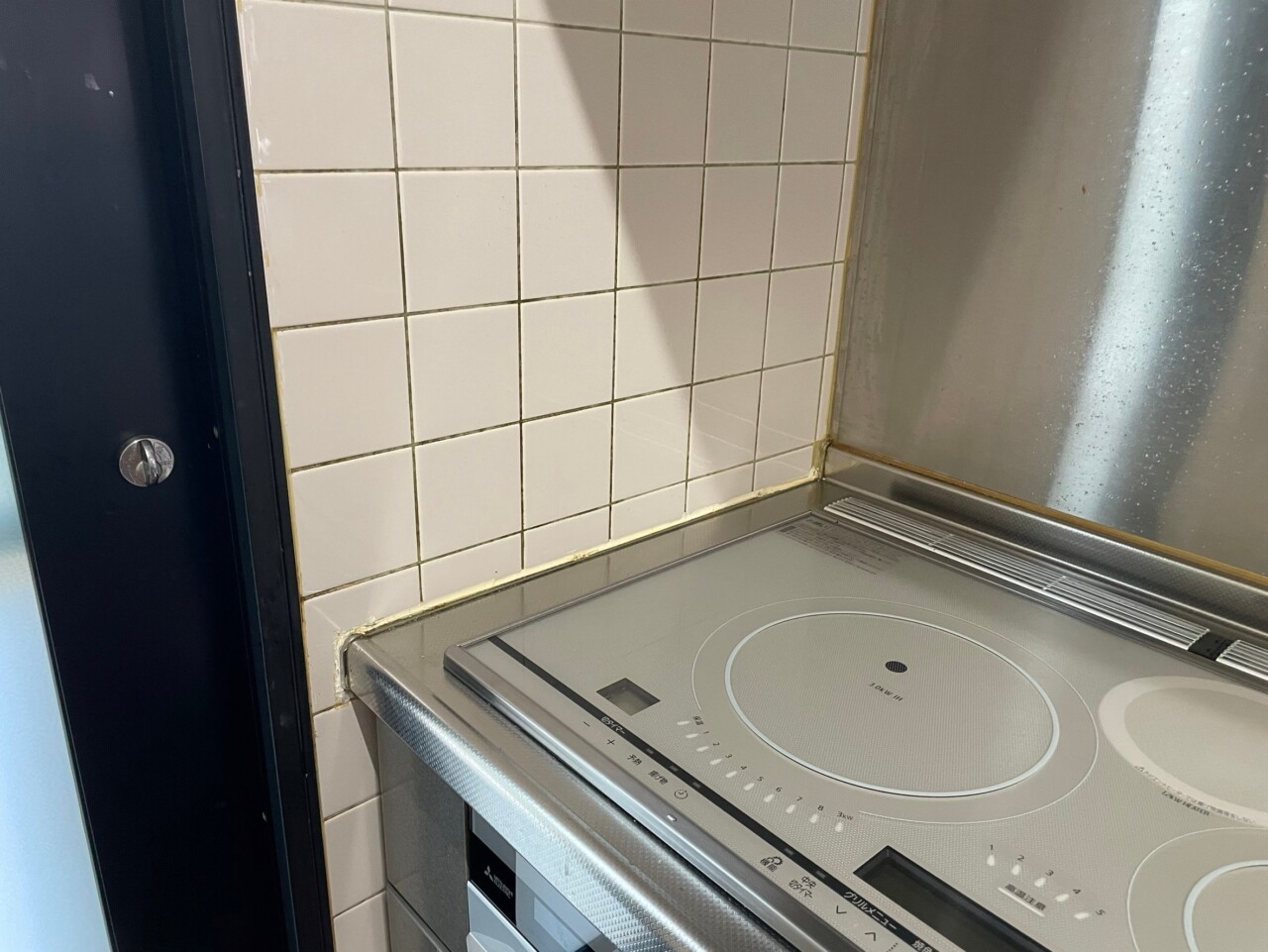 特に、コンロまわりの壁は油はねや水はねが多く、タイルの目地に汚れが入り込んでしまい、落とすのに時間がかかってしまっていたそうです。S様は「毎日の掃除が少しでも楽になれば…」というお気持ちで、キッチンパネルリフォームを決意されました。
