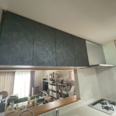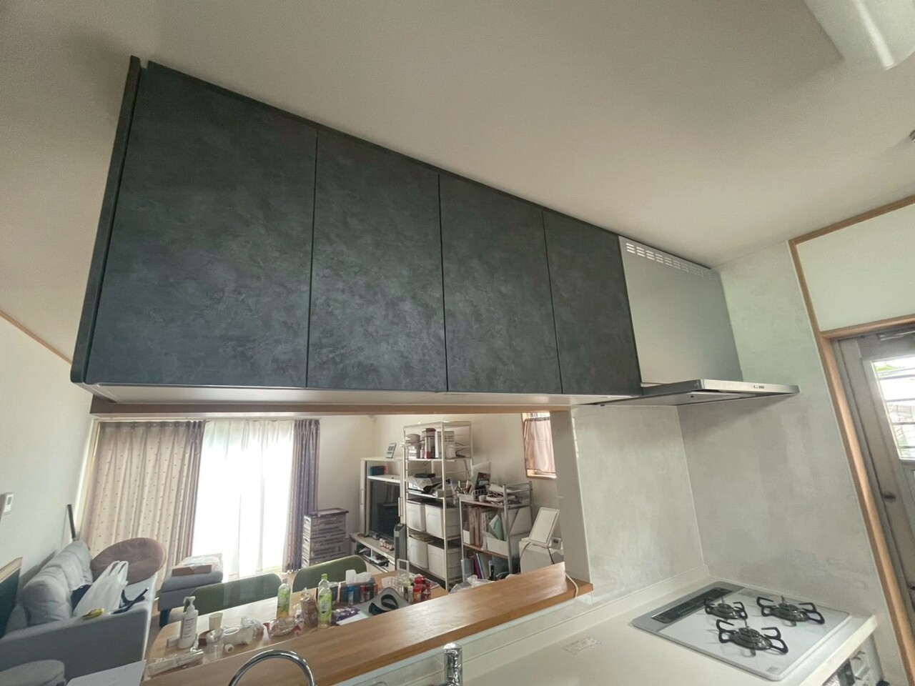 収納不足を解消するため、キッチン上部に吊戸棚を新設。