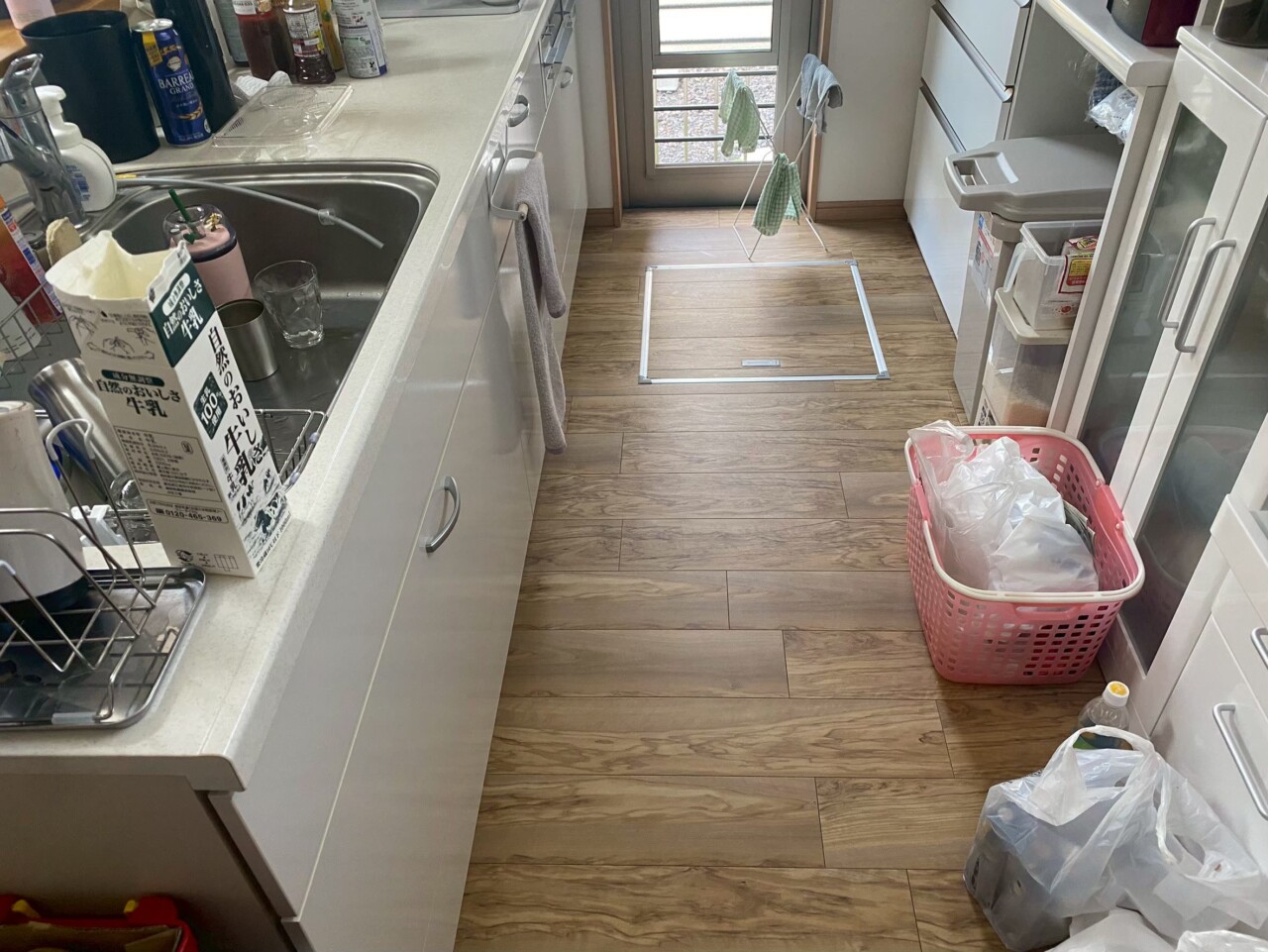 O様は中古住宅を購入されたばかりで、キッチンの古さと収納の少なさにお困りでした。